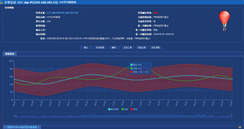 细腻的智能动态基线告警降低了漏报率和误报率,提升告警管理的有效性和敏锐度,出现故障后,进入页面系统将自动锁定触发异常故障点,方便用户快速定位运行趋势中故障点的时间和越值数据。